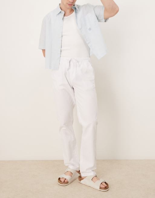 ASOS DESIGN slim linen blend trousers in white