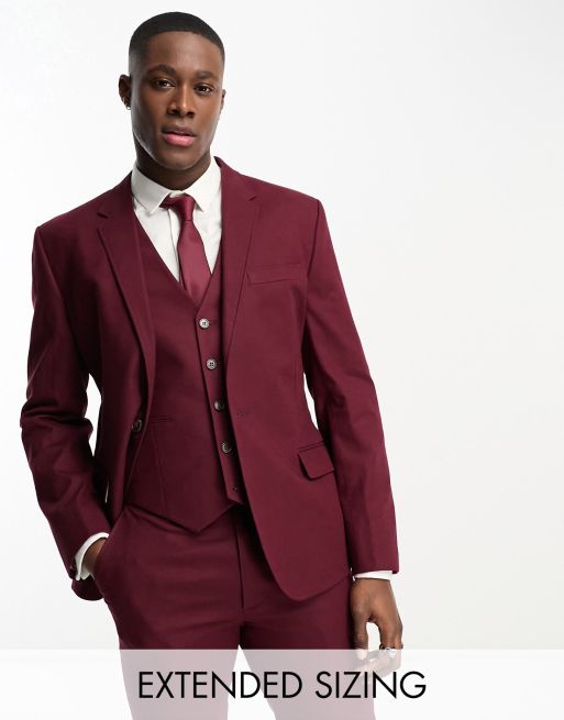 ASOS DESIGN slim linen mix suit jacket in burgundy