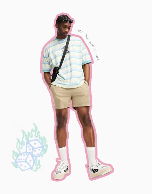 ASOS DESIGN slim linen shorts in shorter length in beige