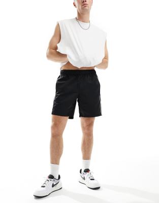ASOS DESIGN slim nylon shorts with piping detail in black