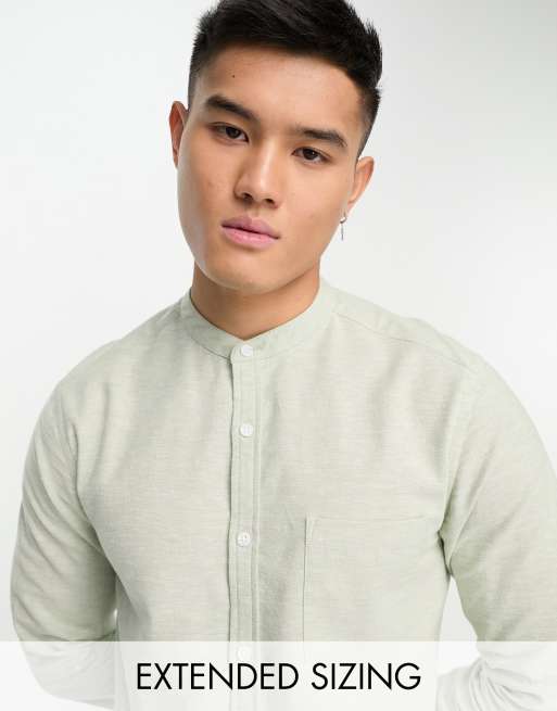 ASOS DESIGN slim oxford shirt with grandad collar in mint yarn dye