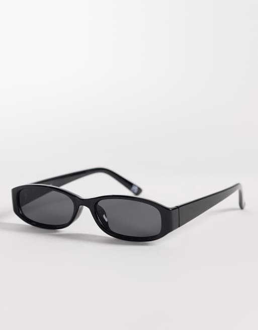 ASOS DESIGN slim rectangle sunglasses in black frame with smoke lens