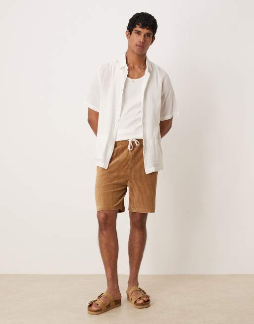 ASOS DESIGN slim ribbed velour short in beige