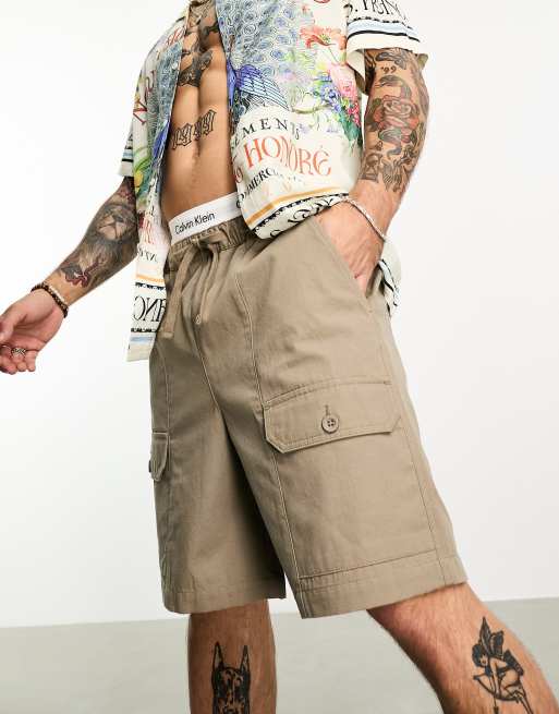 ASOS DESIGN slim ripstop shorts in mid length in beige