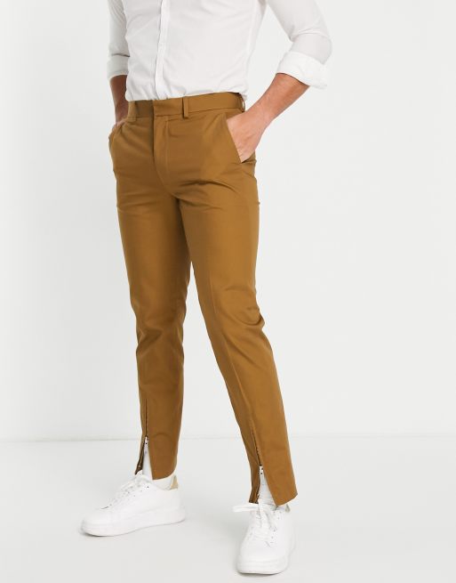 ASOS DESIGN slim smart trouser with zip front hem in brown