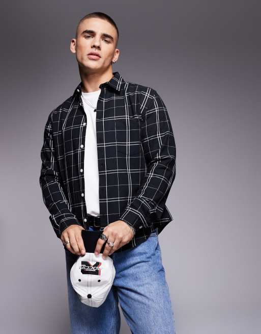 ASOS DESIGN slim stretch shirt with window pane check in black