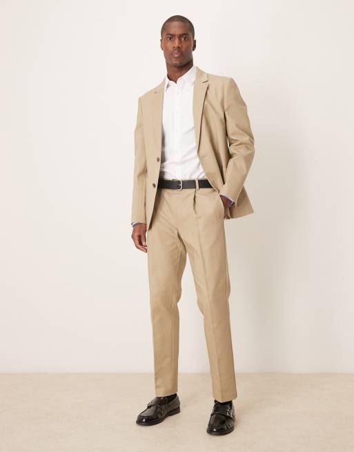 ASOS DESIGN slim suit in khaki soft cotton