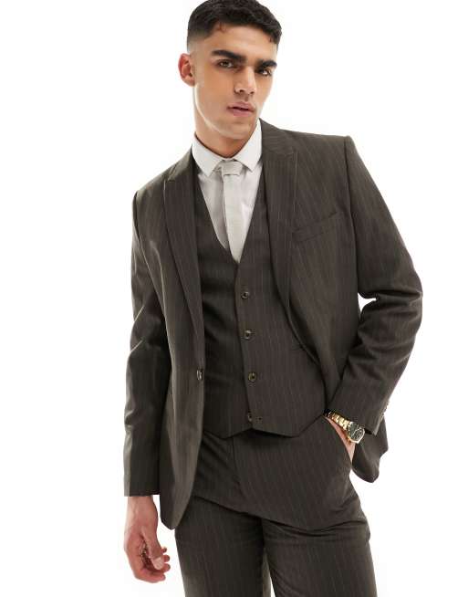 ASOS DESIGN slim suit jacket in brown pinstripe