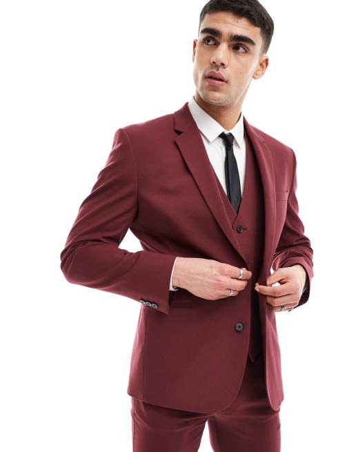 ASOS DESIGN slim suit jacket in burgundy