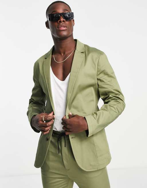 ASOS DESIGN slim suit jacket in khaki green cotton