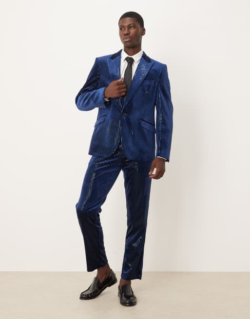 ASOS DESIGN slim suit trouser in velvet sequin in navy