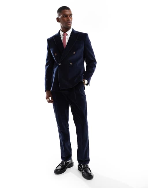 ASOS DESIGN slim suit trousers in navy lightweight velvet - NAVY