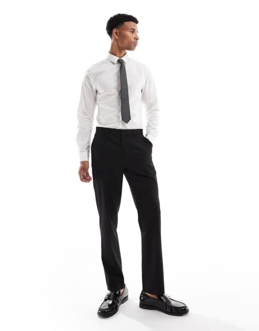 ASOS DESIGN slim suit trousers in subtle black herringbone