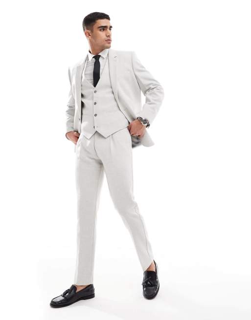 ASOS DESIGN slim suit trousers with wool in ice grey herringbone