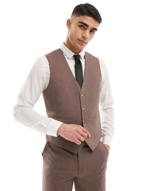 ASOS DESIGN slim suit waistcoat in brown
