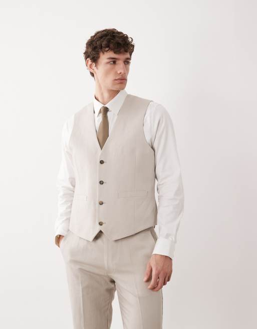 ASOS DESIGN slim suit waistcoat in linen rich stone twill