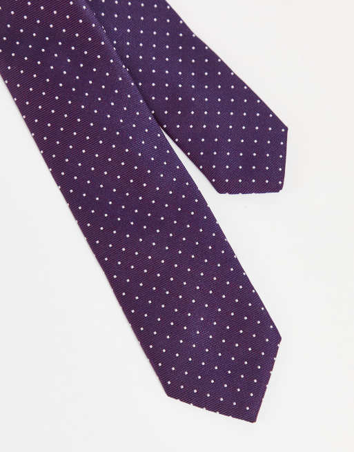 ASOS DESIGN slim tie in ark purple and white mini dot