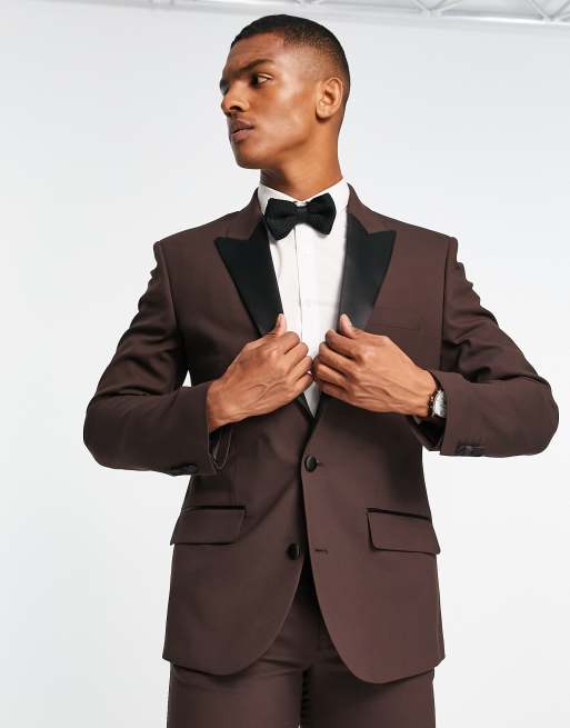 ASOS DESIGN slim tuxedo suit jacket in brown