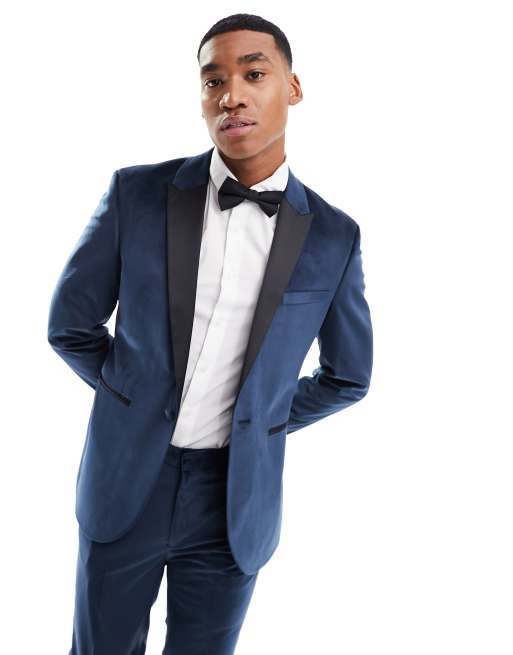 ASOS DESIGN slim tuxedo suit jacket in navy velvet