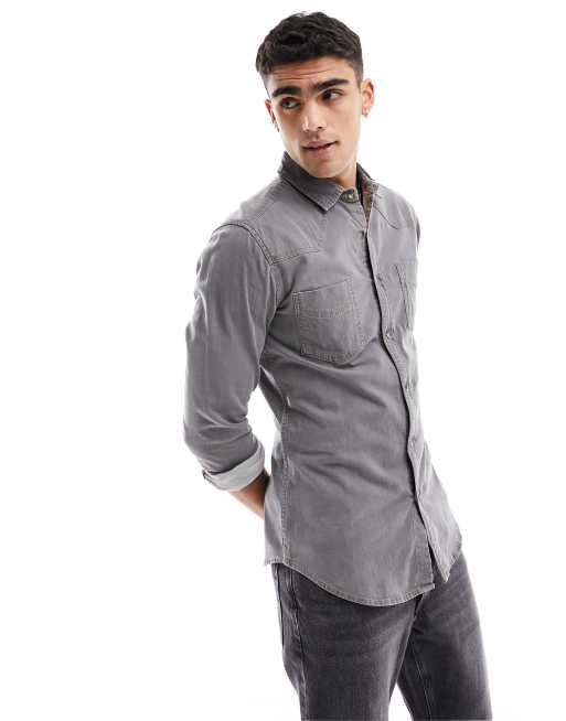 ASOS DESIGN slim western denim shirt with contrast stitching in washed black
