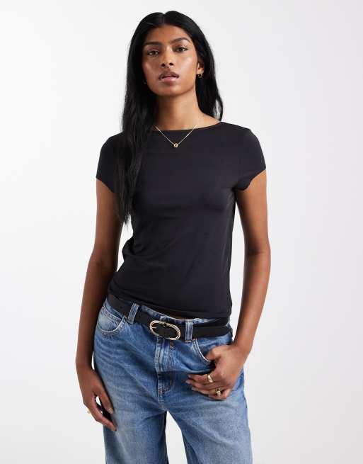 ASOS DESIGN slinky cap sleeve scoop back top in black