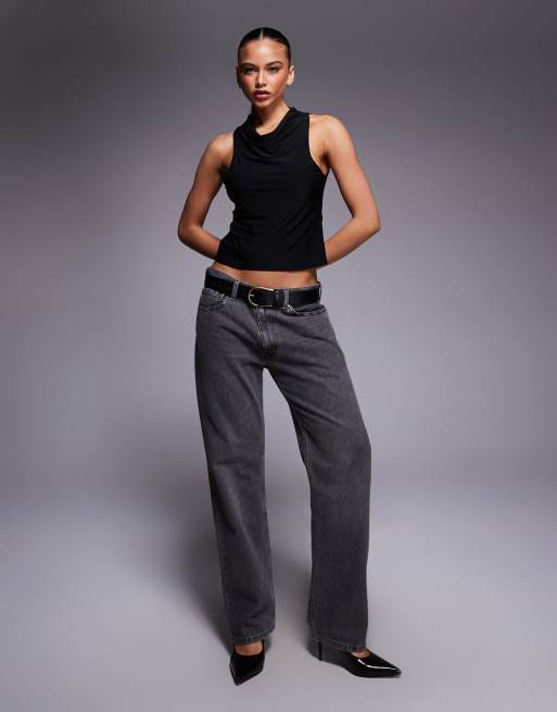 ASOS DESIGN slinky cowl neck tank top in black