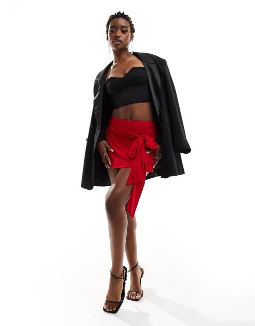 ASOS DESIGN slinky flippy skort with front tie detail in red