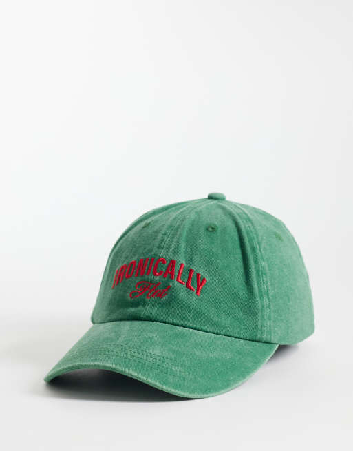 ASOS DESIGN slogan cap in washed green