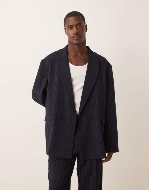 ASOS DESIGN slouchy oversized suit jacket in navy pinstripe