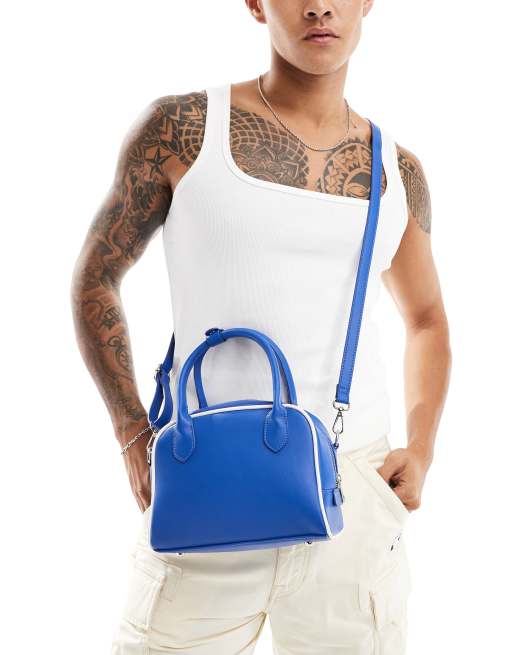 ASOS DESIGN small bowler bag with contrast piping in navy