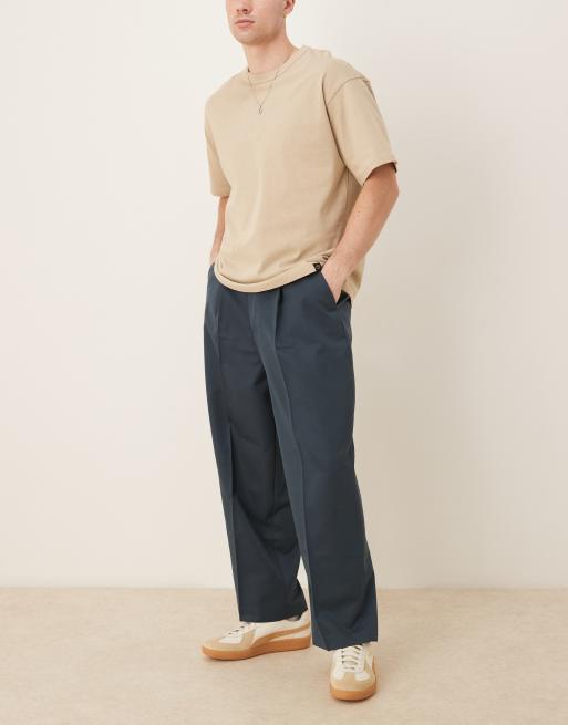 ASOS DESIGN smart balloon fit trousers with front pleat in dark blue