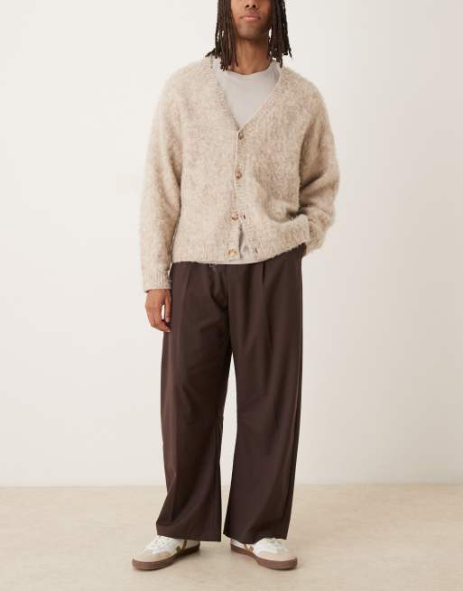ASOS DESIGN smart barrel leg flannel trousers in dark brown