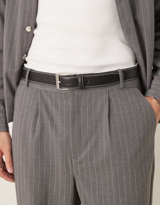 ASOS DESIGN smart belt with contrast stitch in black faux leather