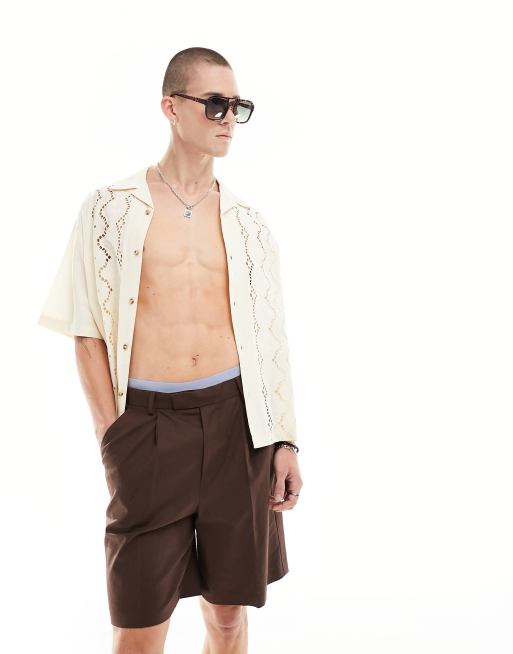 ASOS DESIGN smart bermuda linen blend wide shorts in brown