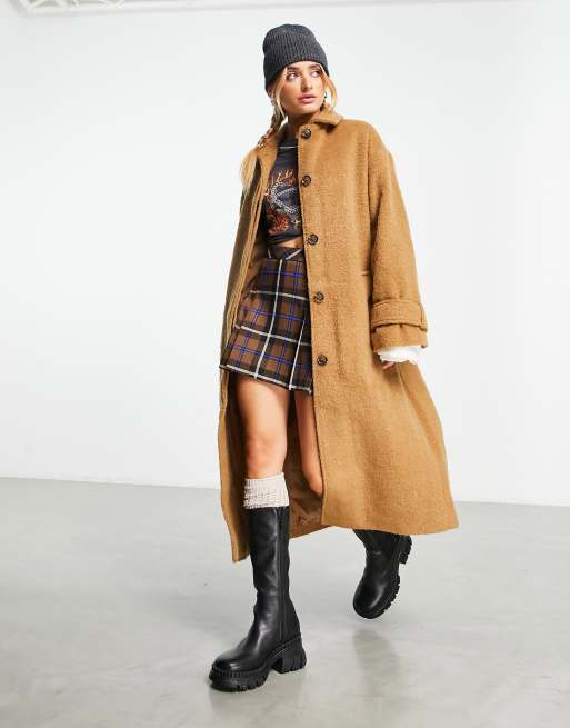 ASOS DESIGN smart brushed boyfriend coat in camel