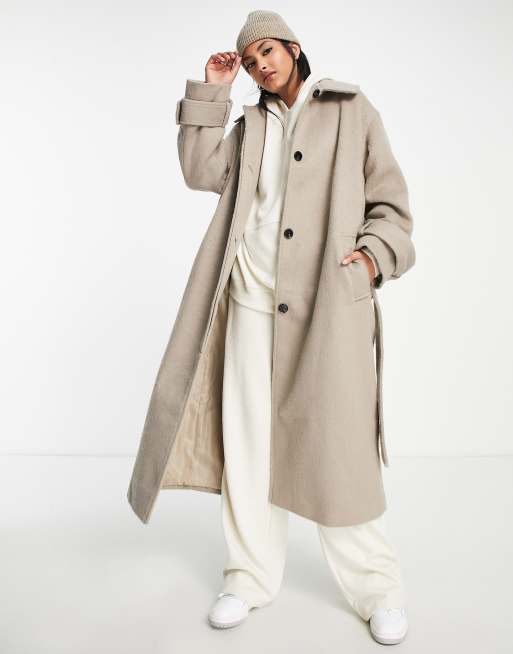 ASOS DESIGN smart brushed boyfriend wool mix coat in mushroom