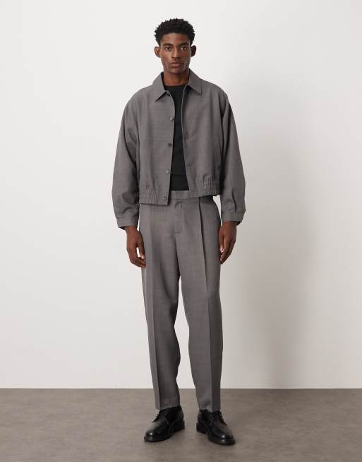 ASOS DESIGN smart co-ord half elasticated oversize tapered trousers in grey melange