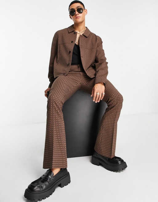 ASOS DESIGN smart co-ord in brown geo check