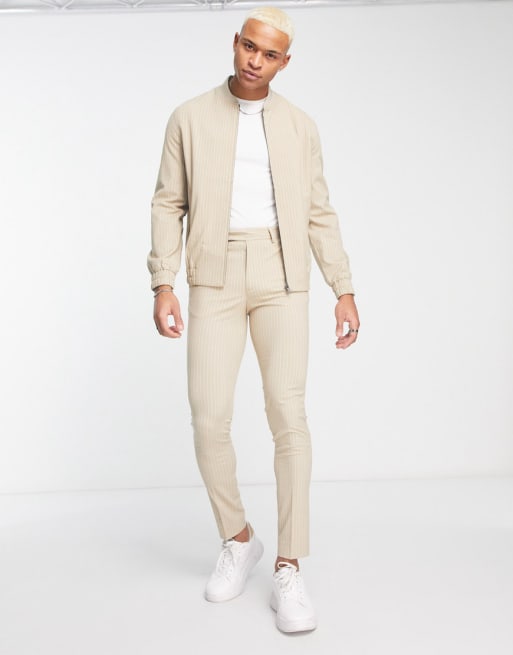 ASOS DESIGN smart co-ord in stone pinstripe