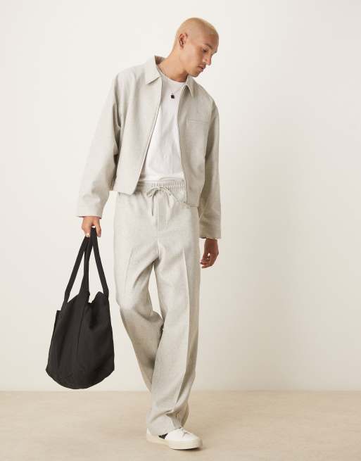 ASOS DESIGN smart co-ord pull on wide trousers in grey texture slub