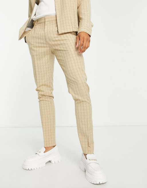 ASOS DESIGN smart co-ord skinny trousers in stone grid check