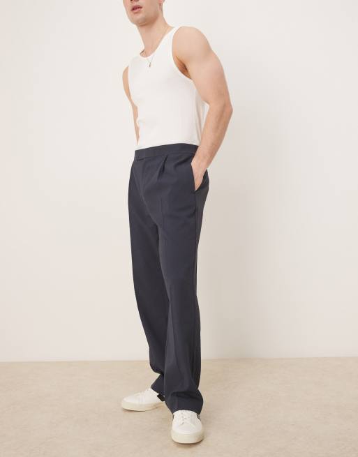 ASOS DESIGN smart co-ord straight leg trousers in navy seersucker texture