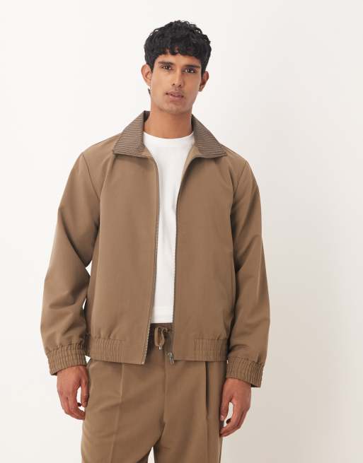 ASOS DESIGN smart co-ord track jacket with contrast collar in brown