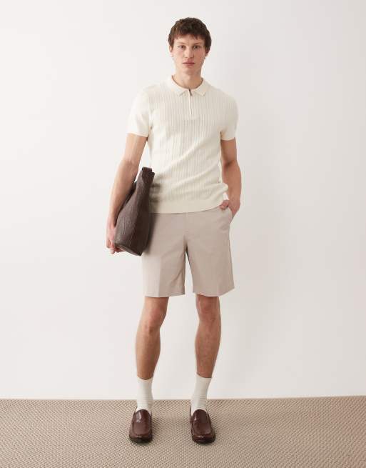 ASOS DESIGN smart cotton rich regular chino shorts in stone