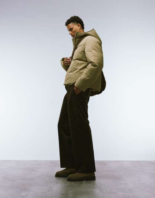 ASOS DESIGN smart cotton rich wide leg corduroy trousers in brown with side adjusters