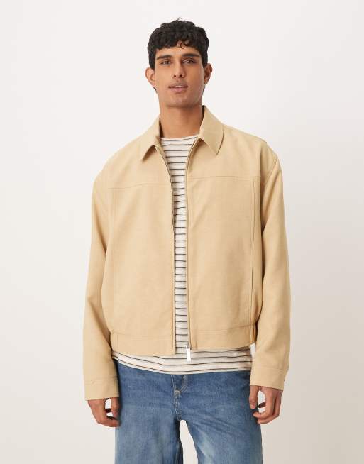 ASOS DESIGN smart harrington jacket in stone