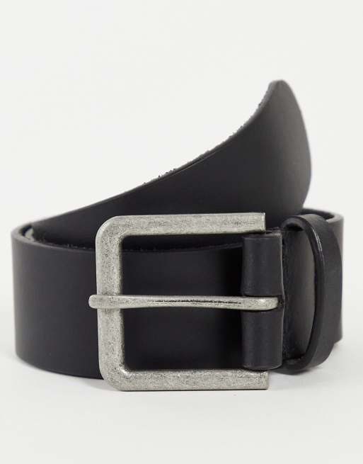 ASOS DESIGN smart leather belt in black with antique silver buckle