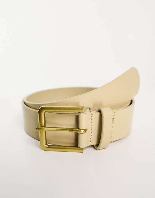 ASOS DESIGN smart leather belt in ecru