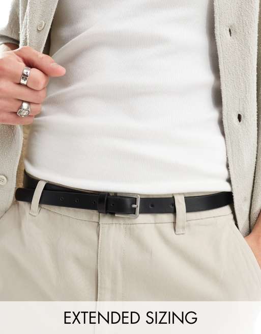 ASOS DESIGN smart leather skinny belt with silver buckle in black
