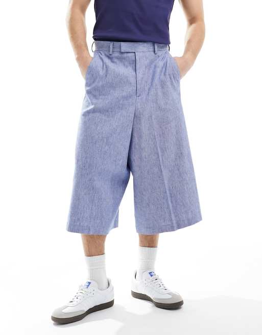 ASOS DESIGN smart linen blend culotte trousers in blue